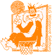 Das Logo der ULG zeigt einen Kater, der in einem Basketballkorb sitzt und einen Basketball auf einem Finger dreht. Bemerkenswerterweise ist dieses Logo der ULG auch schon in Orange und Weiß gehalten und hat tendenziell eine rechteckige Form.