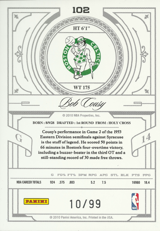 Bob Cousy ist einer der besten Point Guards aller Zeiten. Er spielte von 1950 bis 1963 bei den Boston Celtics in der NBA. 1957 - also in dem Jahr, als er für den UBBC antrat - wurde er mit dem MVP-Award ausgezeichnet und galt somit als bester Spieler der NBA.