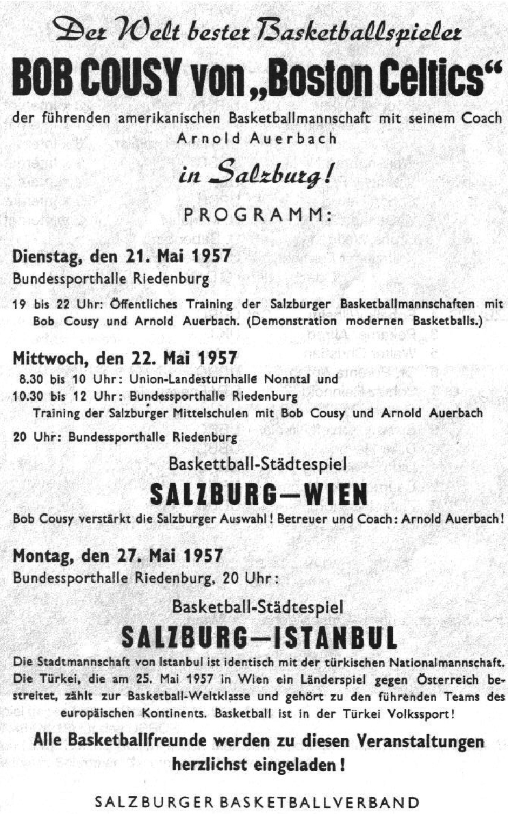 Einer der Höhepunkte in der Geschichte des UBBC war das Gastspiel von Bob Cousy von den Boston Celtics im Basketball-Städtekampf Salzburg gegen Wien. Das Spiel, das am 22. Mai 1957 in der Riedenburghalle vor der Rekordkulisse von 800 Zuschauern stattfand, endete 72:65 (22:30) für den UBBC.